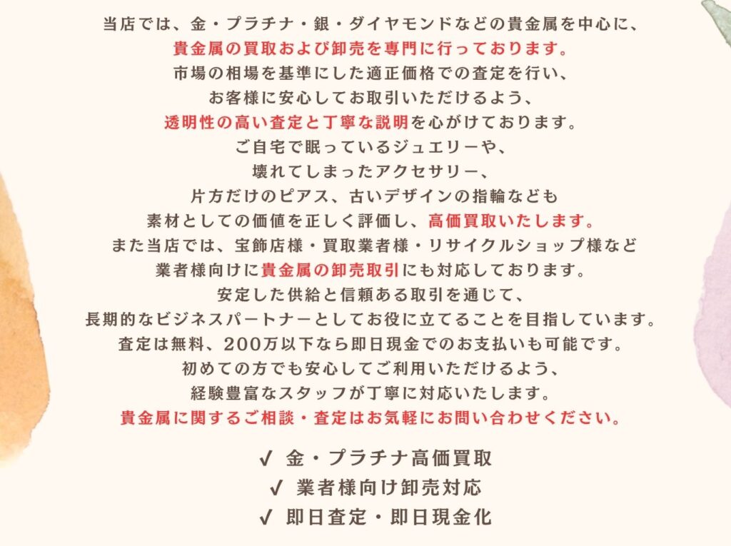 貴金属に関するご相談・査定はお気軽にお問い合わせください
